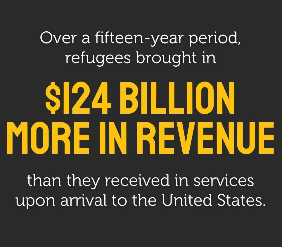 In 2023 alone, refugees had a total household income of $115 billion, with a total spending power of $83.8 billion. They contributed $11.4 billion in state and local taxes and $19.9 billion in federal taxes. Refugee entrepreneurs generated $6 billion in total business income.